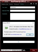 GPU-Z - бесплатная программа от TechPowerUp для отображения технической информации о видеоадаптере (видеоконтроллере/видеокарте/видеомодуле), работающая под ОС Microsoft Windows. Программа отображает технические характеристики графического процессора и его видеопамяти, то есть определяет производителя и название видеоадаптера, тип видеопроцессора и его характеристики, размер и тип видеопамяти, дату и версию видеобиос, дату и версию видеодрайвера, а также показывает поддерживаемые видеопроцессором графические технологии и стандарты. Программа GPU-Z может заодно дополнительно определить температуру и частоту ядра, частоту видеопамяти и скорость вращения кулера и провести онлайн сравнение устройства с другими аналогичными продуктами.