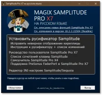 Русификатор предназначен для Samplitude Pro X7 (Suite) версии 18.2.2.22564 и включает перевод интерфейса, руководств, интерактивной справки, в том числе по встроенным плагинам и инструментам, и дополнительные материалы. Чтобы открыть русскоязычную справку, щелкните ?, Справка или нажмите F1 в любом окне программы.